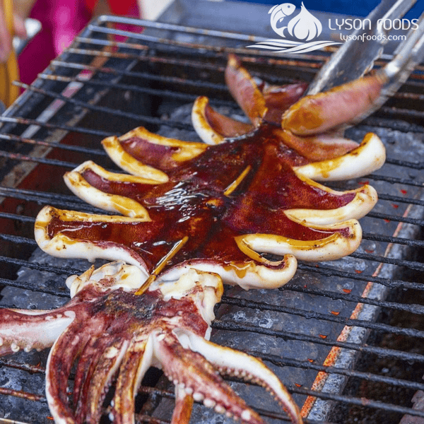 Mực lá Lý Sơn nướng muối ớt & nướng sa tế.
