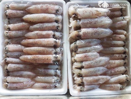 Mực sữa được xếp vào khay đẹp mắt và sạch sẽ