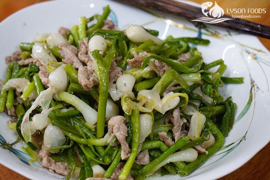 Cách làm tỏi non Lý Sơn xào thịt bò.