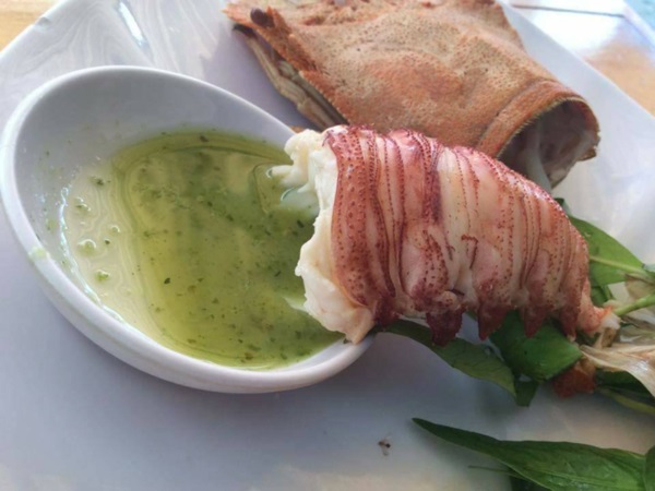 Món ngon: tôm mũ ni xào hành + bơ hấp dẫn bởi nước sốt đậm đà, tách từng miếng thịt chấm kèm với nước sốt thêm một chút muối ớt xanh thì sẽ đậm đà hơn.
